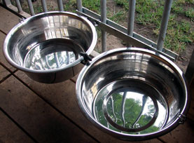 Schwenkbares Doppelfutternapfset im Gitterelement